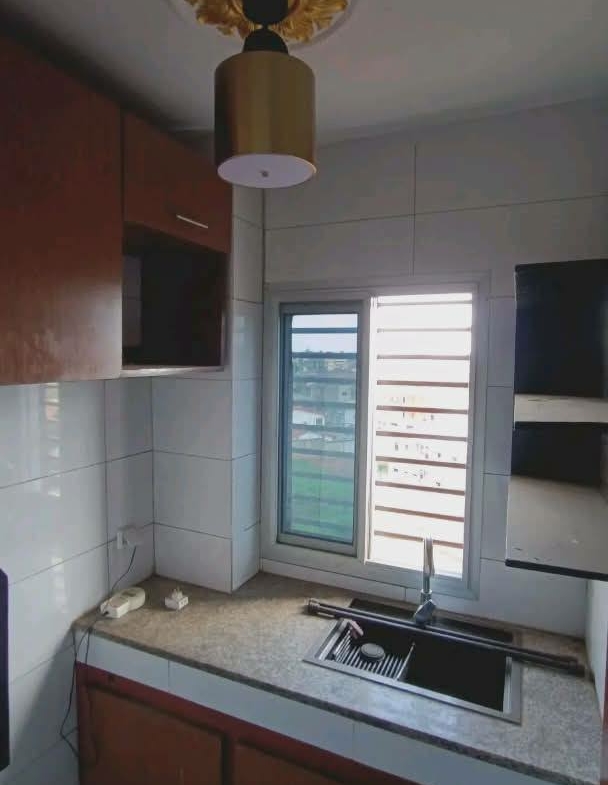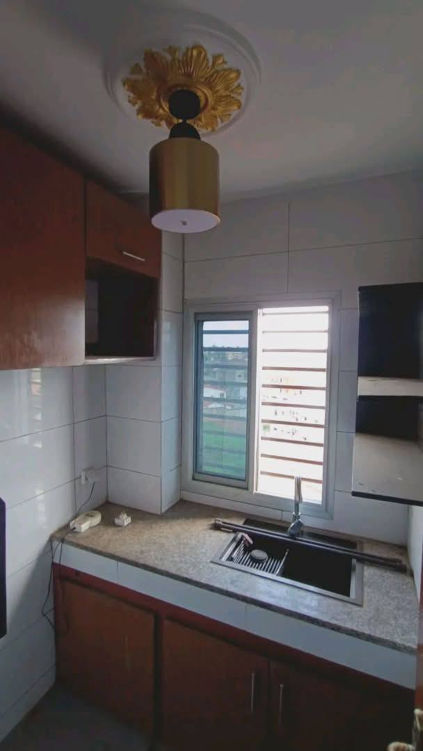 1 grand salon 1 grande cuisine 1 chambre 1 douche + eau chaude 1 forage 1 parking avec vidéo surveillance 1 gardien